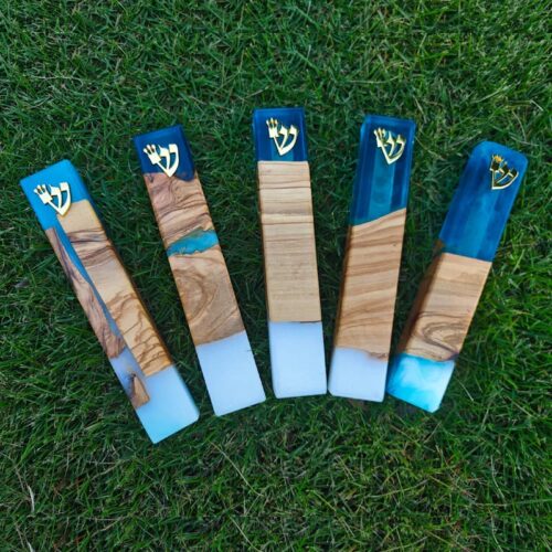 כיסוי מזוזה מעץ ואפוקסי בעבודת יד במגוון עיצובים ישראליים