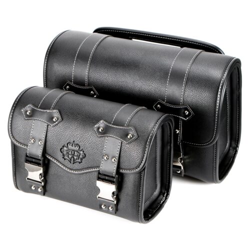 - התיק צד אוניברסלי לאופנוע עשוי מעור PU, חומר המוכר בעמידותו ובקלות הניקוי שלו.