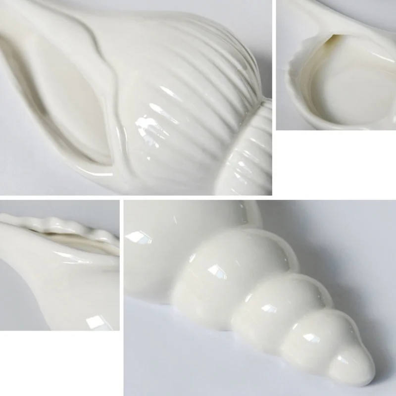 אגרטל קונכייה קרמי לתלייה על הקיר בעיצוב מודרני, ומתאים לצמחי מים או פרחים דקורטיביים