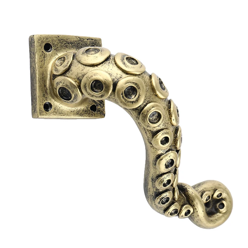 ידית דלת דקורטיבית בעיצוב זרוע תמנון תהווה אלמנט איכותי וייחודי בכל דלת שתותקן עליה. הידית מעוצבת כזרוע תמנון, עם פרטי עיטור מוקפדים המעניקים לה מראה מיוחד. המוצר מיועד למי שמעוניין להוסיף אלמנטים ויזואליים מעניינים לעיצוב הפנים של הבית או המשרד. הידית מספקת פונקציונליות רגילה של ידית דלת, תוך שמירה על עיצוב ייחודי המתאים לסגנונות מסוימים ונבחרים. היא עשויה מחומר עמיד המבטיח שימוש לטווח הרחוק ושמירה על המראה הייחודי לאורך זמן.