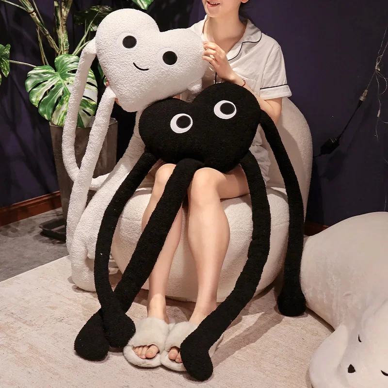 כרית לב ארוכה רכה ומחייכת עם רגליים וידיים