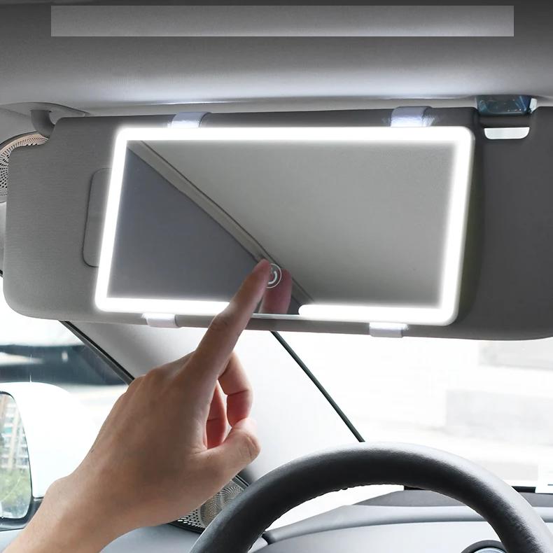 מראת איפור נטענת דקה עם תאורת LED למגן שמש ברכב