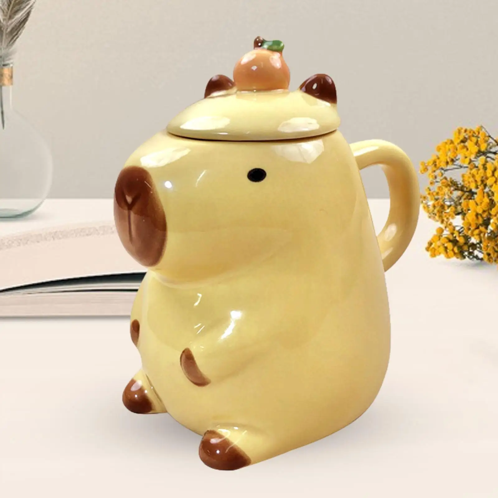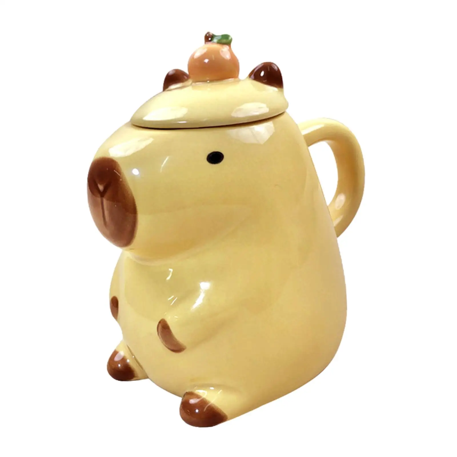 ספל 450 מ”ל מקרמיקה מקסים עם מכסה בעיצוב קפיברה מצוירת – מתנה מושלמת לילדים ולמבוגרים