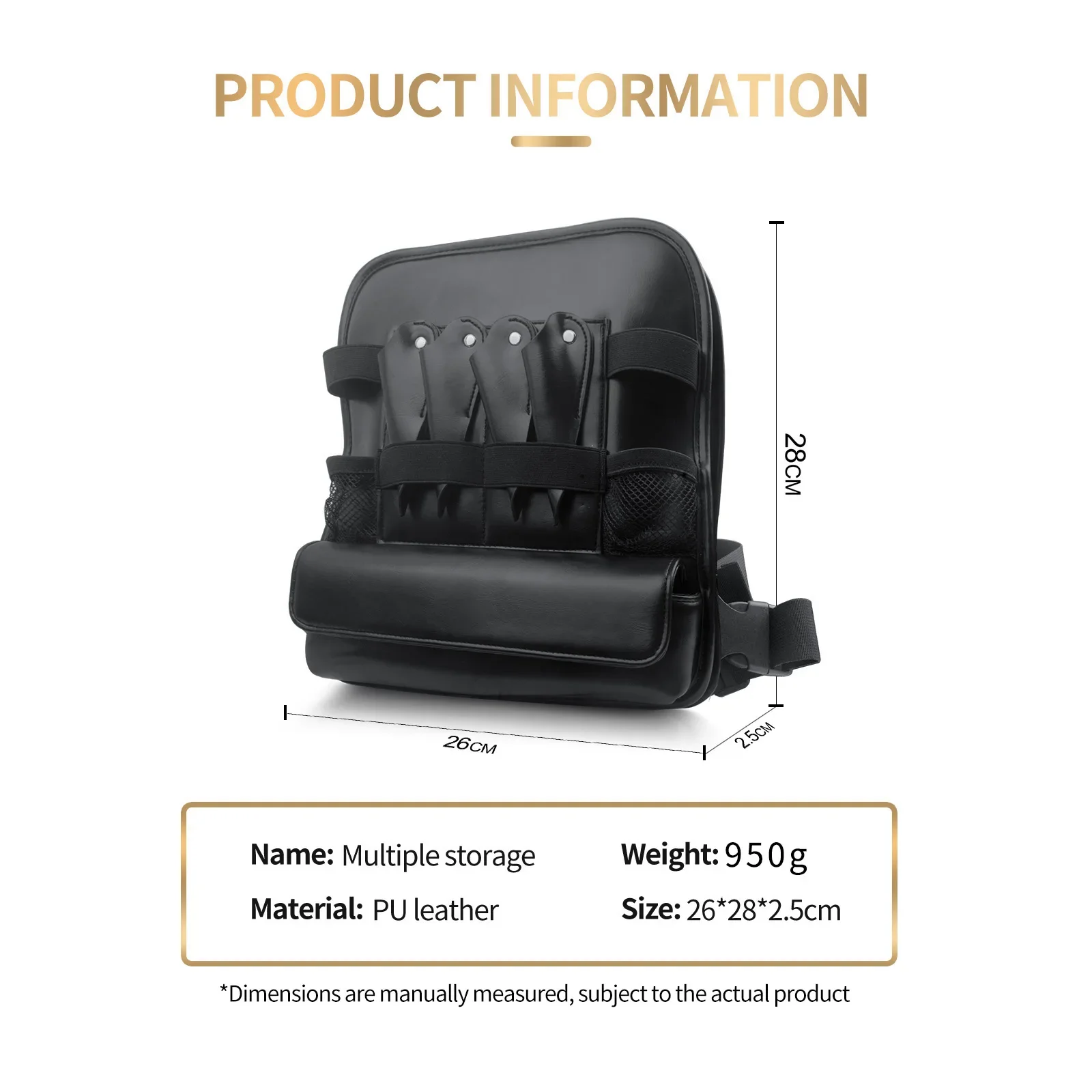 - תיק מקצועי זה משמש גם כאמצעי אחסון עבור כלי תספורת וגם כתיק תלייה לצוואר, מה שמאפשר לספרים ולמעצבי שיער לשאת את הציוד שלהם באופן נוח וזמין במהלך העבודה.