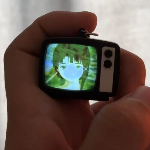מחזיק מפתחות מיני בעיצוב טלוויזיה עם אנימה – לתליה על התיק או בצרור המפתחות
